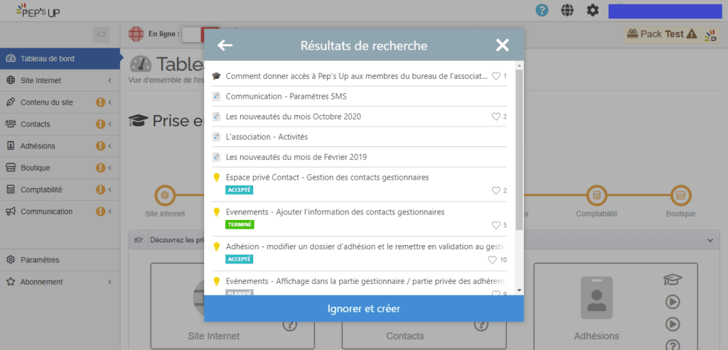 1 – Depuis votre tableau de bord Pep’s Up