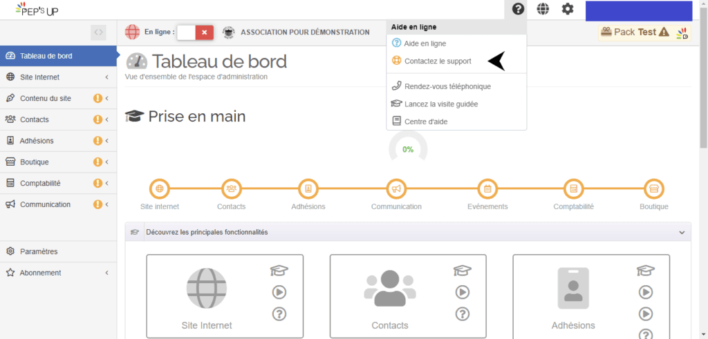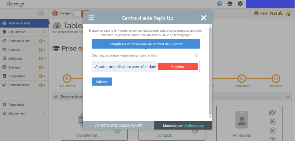 Pep’s Up propose de nombreuses fonctionnalités pour faciliter votre quotidien. Afin de vous accompagner au mieux, nous avons mis en place un système simple et rapide pour contacter notre équipe support. Voici les différentes étapes pour créer un ticket d’assistance et obtenir de l’aide efficacement.