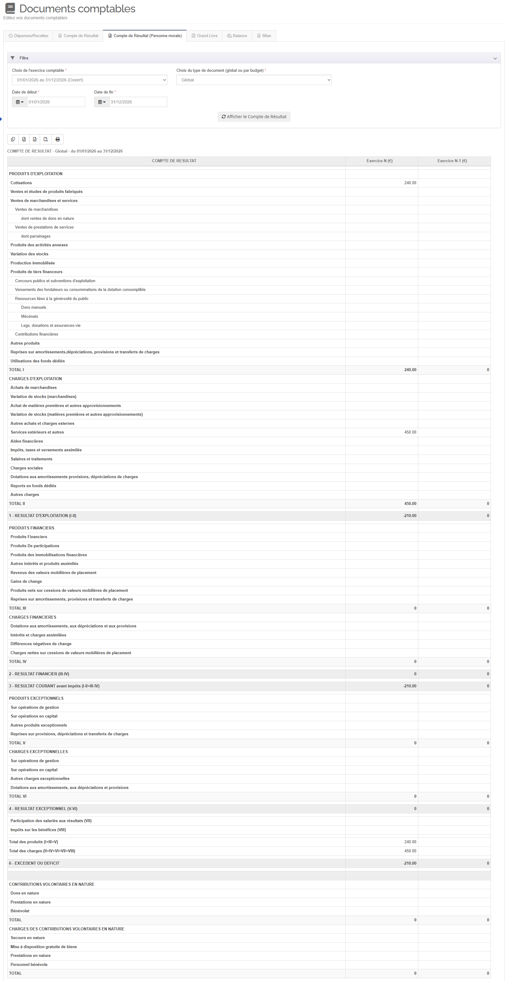 Comptabilité - Documents - Compte de résultat (Personne morale)