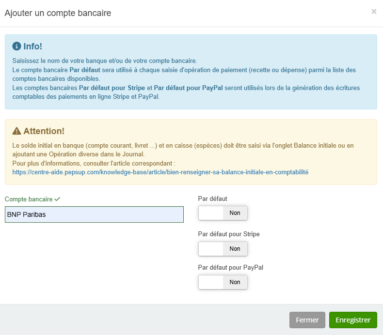 Déclarer vos comptes bancaires et les associer aux modules de paiement.