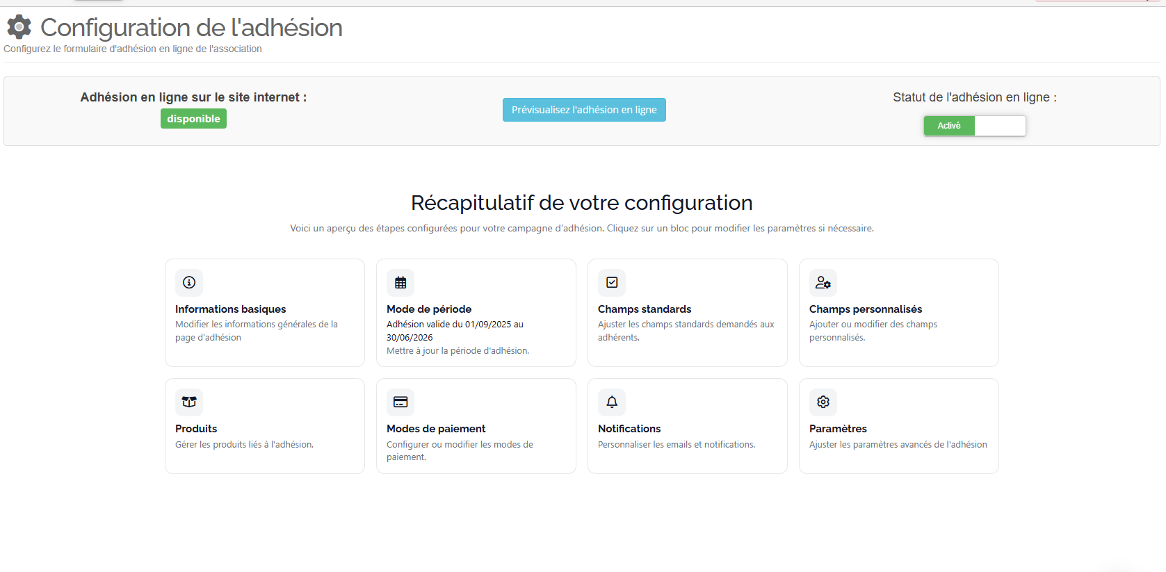 La configuration de l’adhésion est une étape essentielle : elle détermine la présentation du formulaire, les conditions d’inscription, les paiements et les communications automatiques.