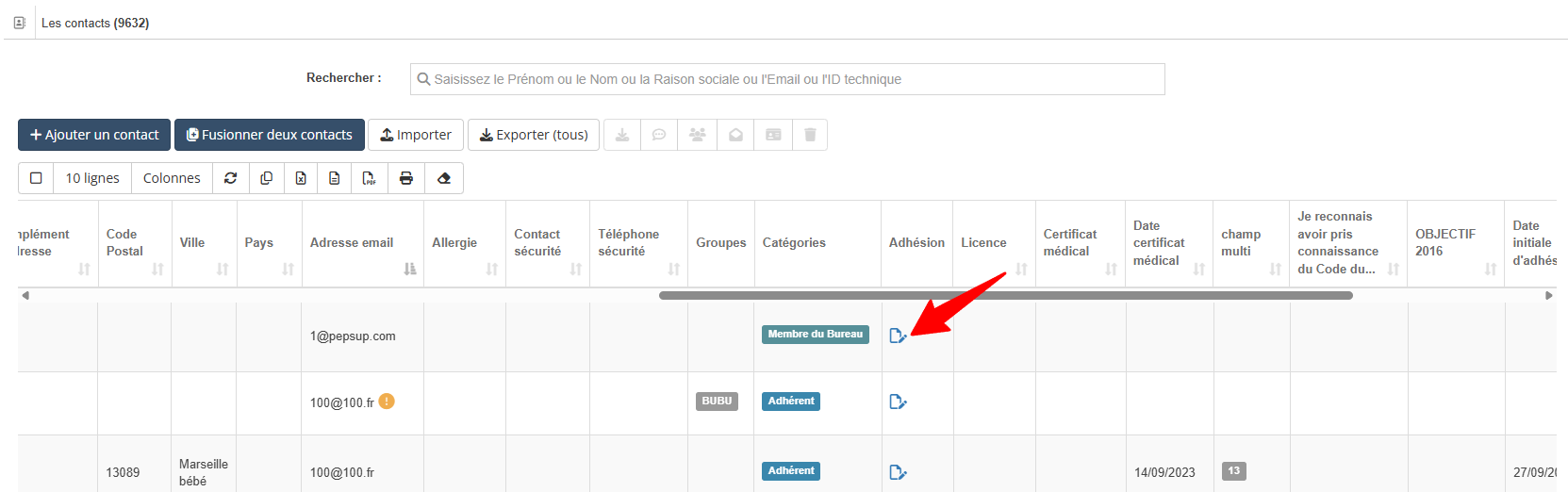 Une nouvelle colonne est ajoutée au tableau des contacts pour faciliter l’accès aux dossiers d’adhésion.