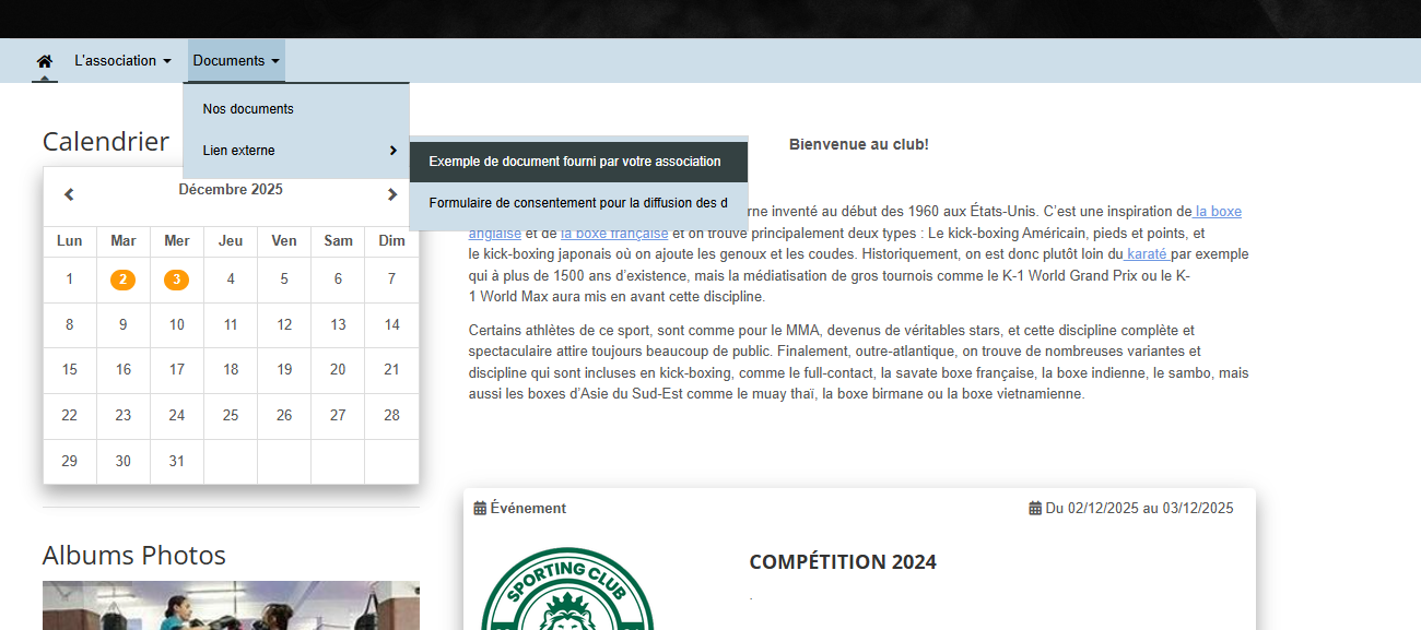Exemple de menus avec sous-menu personnalisé d'un site internet