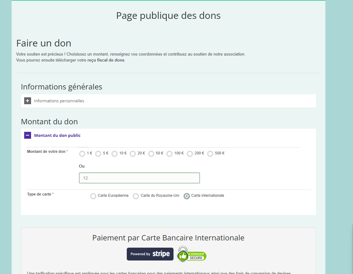 Ce paramétrage vous permet donc de personnaliser la présentation de la page publique de dons tout en maintenant un lien automatique avec le module de gestion et la génération des reçus fiscaux.