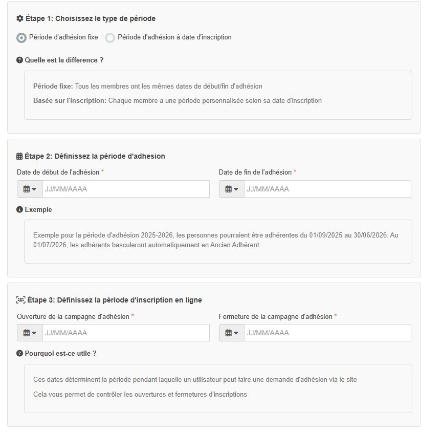 🟡 Étape 2 – Mode de période d’adhésion