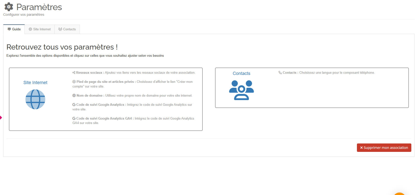 Cliquez sur l'onglet de votre choix pour accéder aux paramètres en question.
