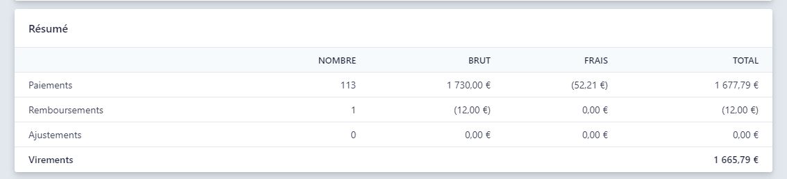 Eric ci-joint copie écran de Stripe. Il faut ensuite cliquer sur le chiffre 1665.79 pour avoir la page écran que j'ai envoyé précédemment.