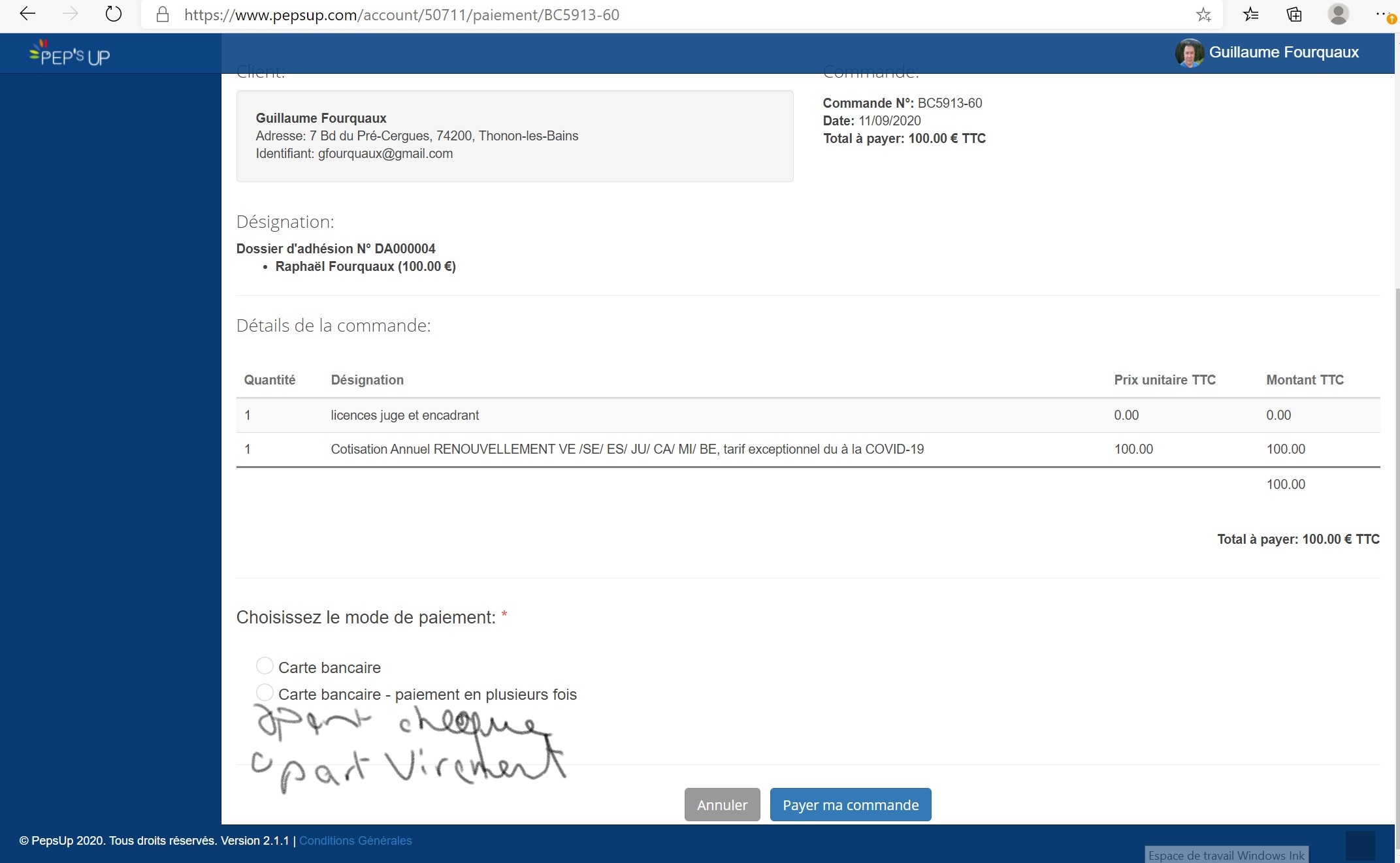 • Ensuite, dans l'espace adhérent, l'idée est de pouvoir afficher cette information quand l'adhérent veut effectuer un règlement par chèque ou virement.