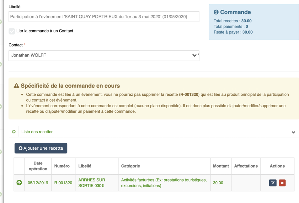 Il faudrait une validation (avant mise en paiement) du responsable de l'évènement et c'est seulement ensuite que l'adhérent pourrait payer